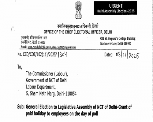 General Election to Legislative Assembly of NCT of Delhi-Grant of paid holiday to employees on the day of poll