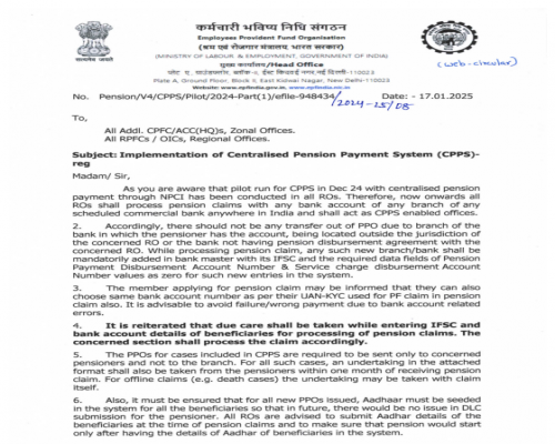 Pension Circular Implementation of Centralised Payment System (CPPS)-17.01.2025