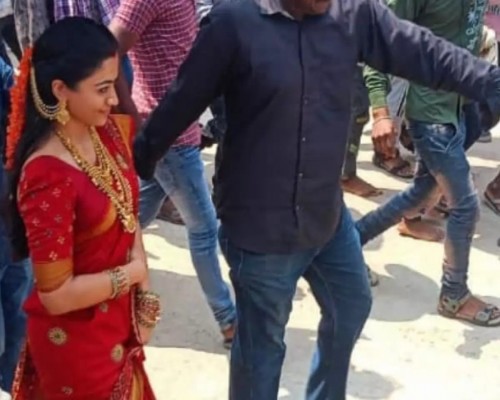'पुष्पा 2 ' के सेट पर रश्मिका मंदाना लाल साड़ी आई नजर