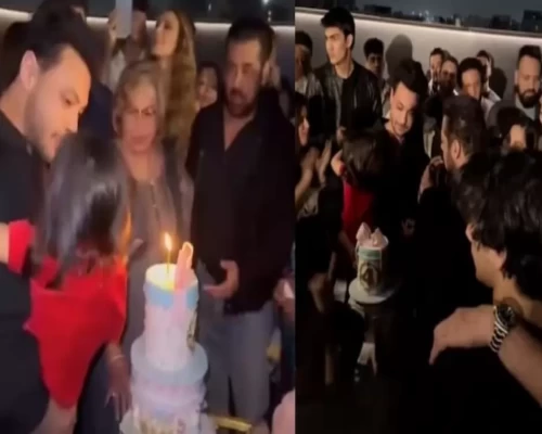 सलमान खान और आयत ने मिलकर थ्री-टीयर केक कट किया. वीडियो में देख सकते हैं कि आसपास के लोग शेयर तालियां बजा रहे हैं. वीडियो में अरबाज खान और उनके बेटे अरहान भी नजर आ रहे हैं. इस मॅश पर भाईजान ने ब्लैक शर्ट और मैचिंग जैकेट में नजर डाली. ये तस्वीरें सोशल मीडिया पर जमकर वायरल हो रही है.