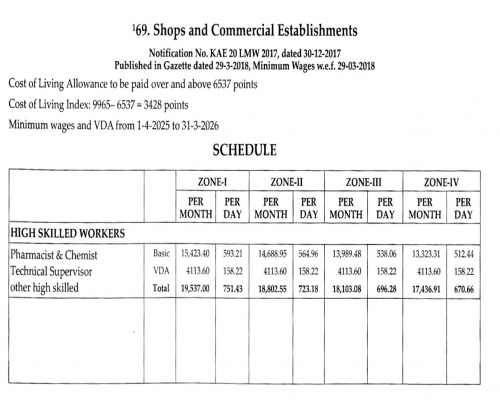 Shops and Commercial Establishments - Minimum Wages and VDA From 1-4-2025 to 31-3-2026