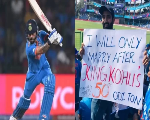 वहीं अब सोशल मीडिया पर एक फैन का पोस्टर जमकर वायरल हो रहा है, जिसमें फैंन ने लिखा है कि, "मैं किंग कोहली के 50 वनडे शतक पूरे होने के बाद ही शादी करूंगा." वनडे क्रिकेट में कोहली सबसे ज़्यादा शतक लगाने वाले दूसरे बल्लेबाज हैं.