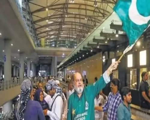 लेकिन इस दौरान उन्होंने एयरपोर्ट पर ही पाकिस्तान का झंडा फहरा दिया. गौरतलब हो कि पाकिस्तान क्रिकेट टीम बुधवार शाम 8 बजे एयरपोर्ट टर्मिनल से निकली. जहां टीम के प्रशंसकों ने उनका अच्छी तरह से स्वागत किया. इसी भीड़ में बशीर भी शामिल थे.